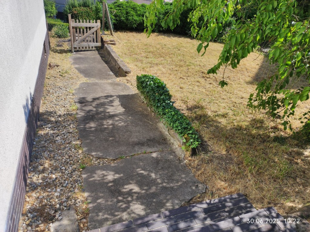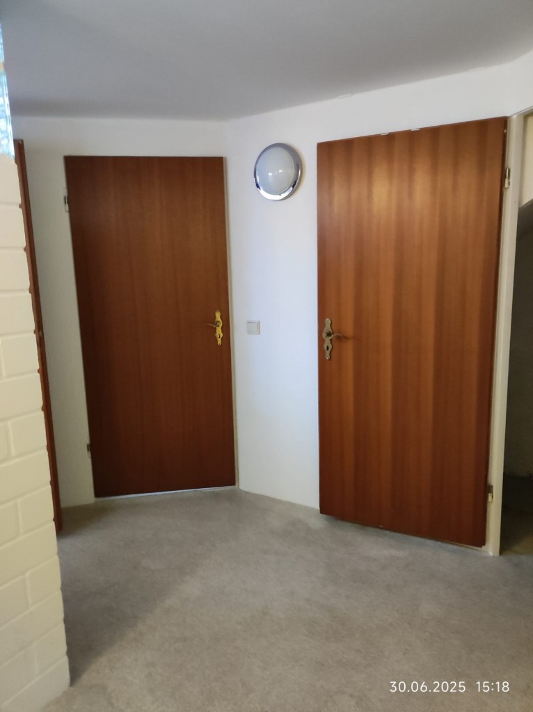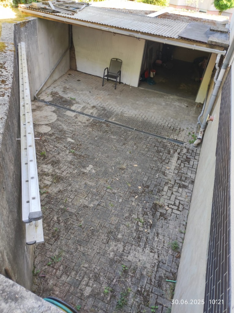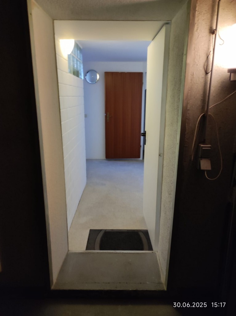 Das Haus kann über zwei Eingänge betreten werden. Zum einen über den Eingang, der sich auf der gepflasterten Hausrückseite (Gartenseite) befindet und zum anderen über die angrenzende Garage. Die zweite Garage enthält keinen Eingang/Durchgang und kann nur über das Garagentor betreten und wieder verlassen werden.